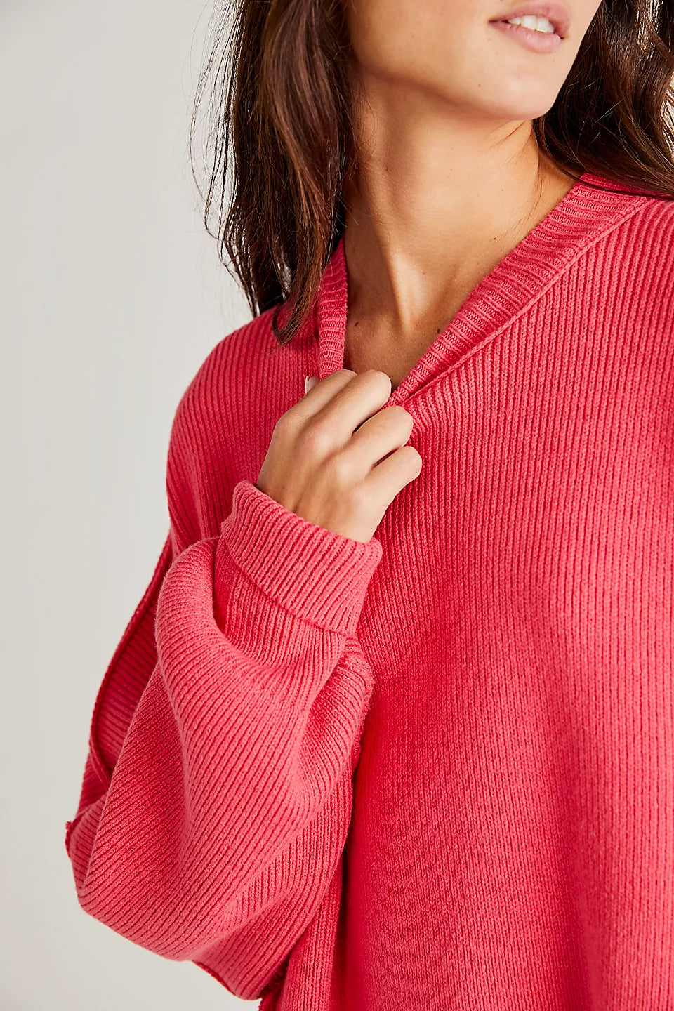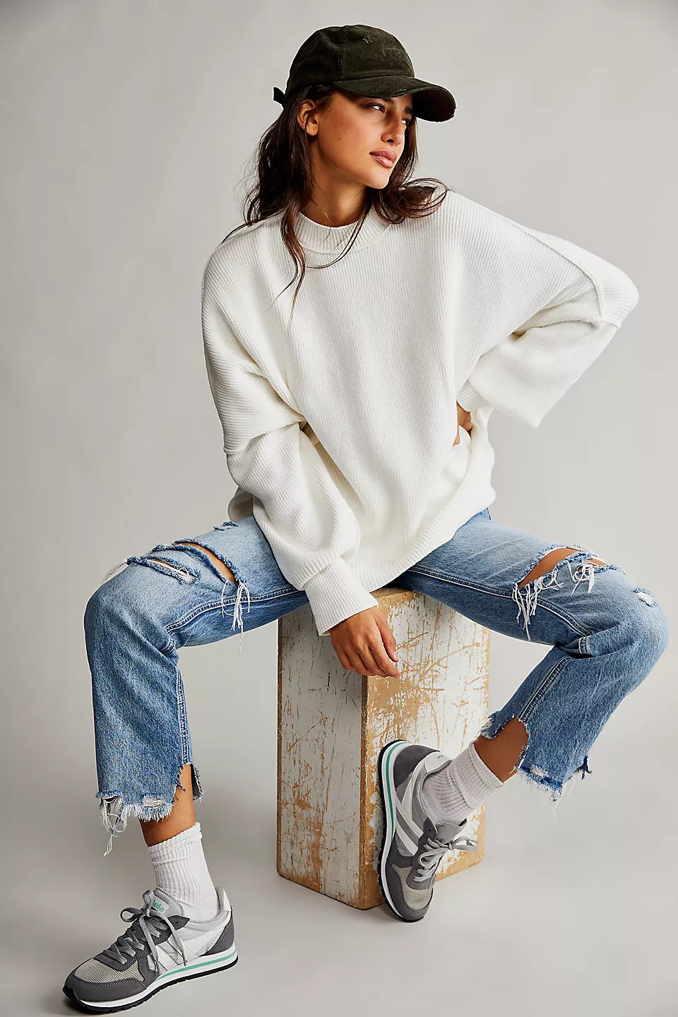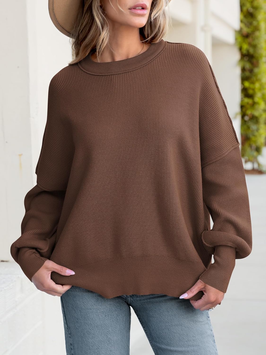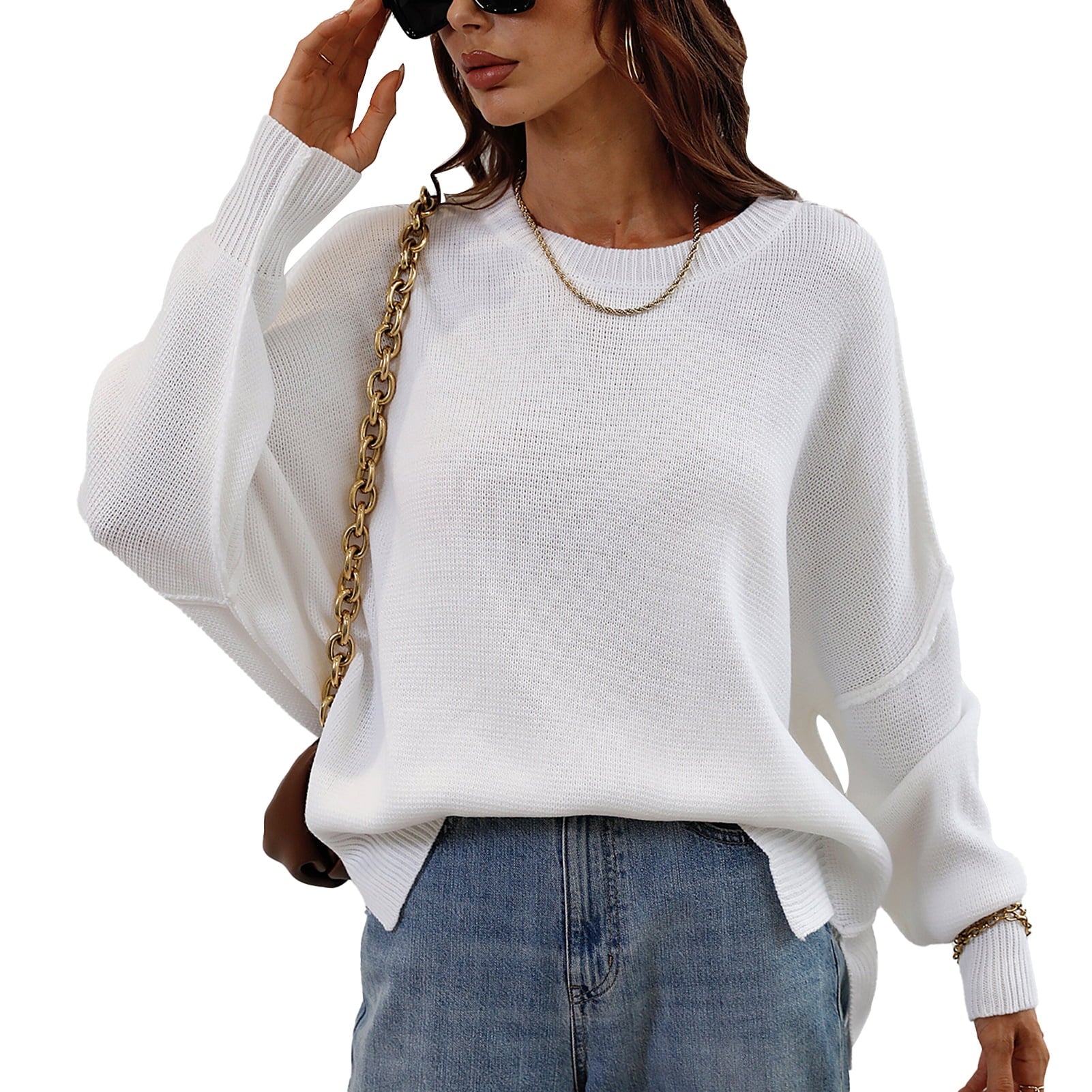 Le pull présenté sur l’image est un modèle oversize, caractérisé par une coupe large et des épaules tombantes. Ce style donne un effet décontracté tout en assurant un confort optimal. Sa longueur descend sous les hanches, ce qui permet de le porter seul comme une robe courte ou avec d'autres vêtements pour un look superposé.