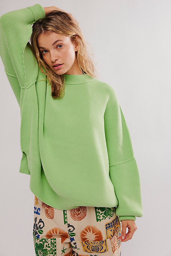 Les couleur du pull apporte une énergie et une audace à la tenue. Ce ton lumineux attire le regard et peut être facilement assorti avec des couleurs neutres comme le beige, le noir ou le blanc. De plus, les finitions côtelées sur le col, les poignets et l’ourlet ajoutent une touche structurée qui contraste avec la coupe ample du pull.c