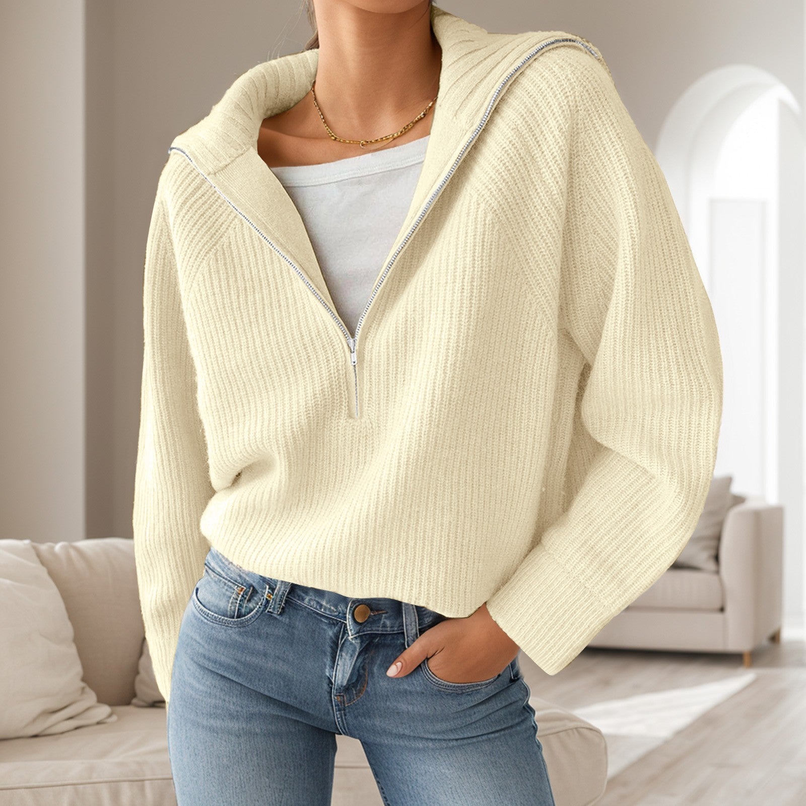Ce pull à demi-zip allie à la perfection confort et élégance. Conçu dans une maille douce et texturée, il offre une sensation agréable sur la peau tout en apportant une touche sophistiquée à votre tenue. Son col légèrement montant et zippé permet de jouer avec le style en fonction de vos envies, offrant ainsi un look polyvalent adapté à toutes les occasions