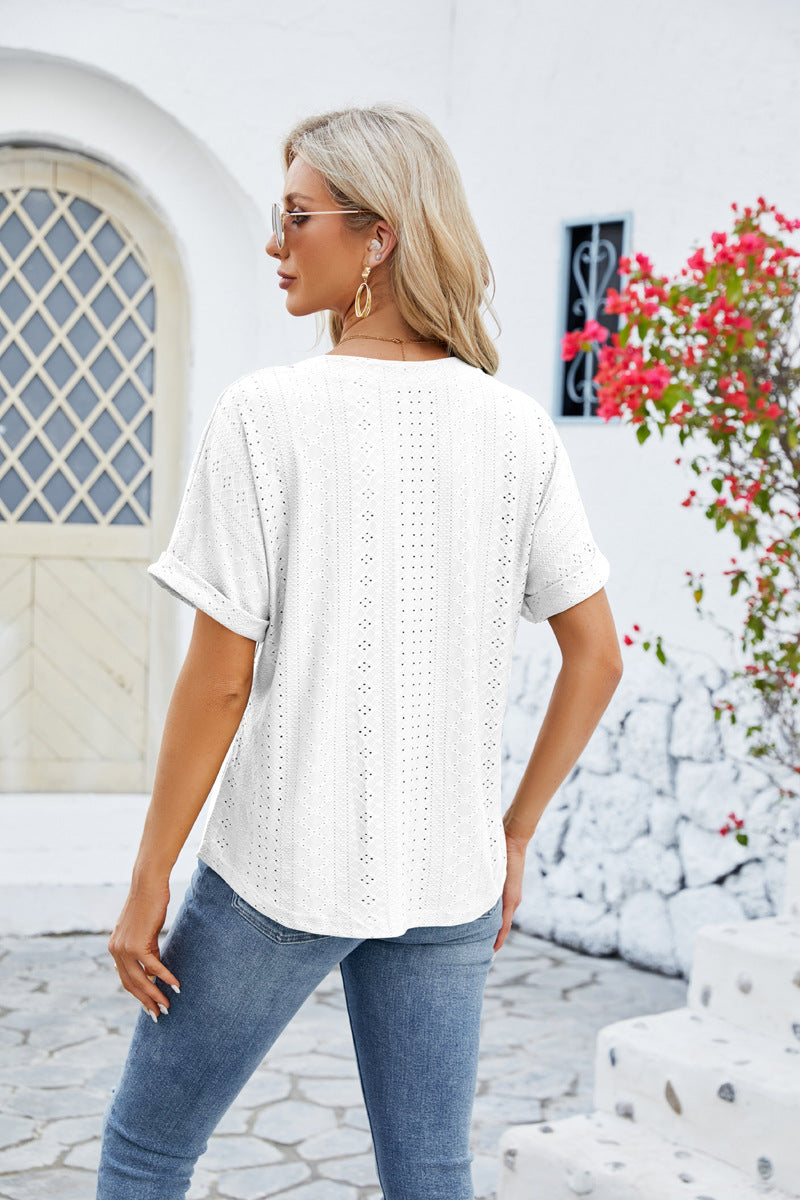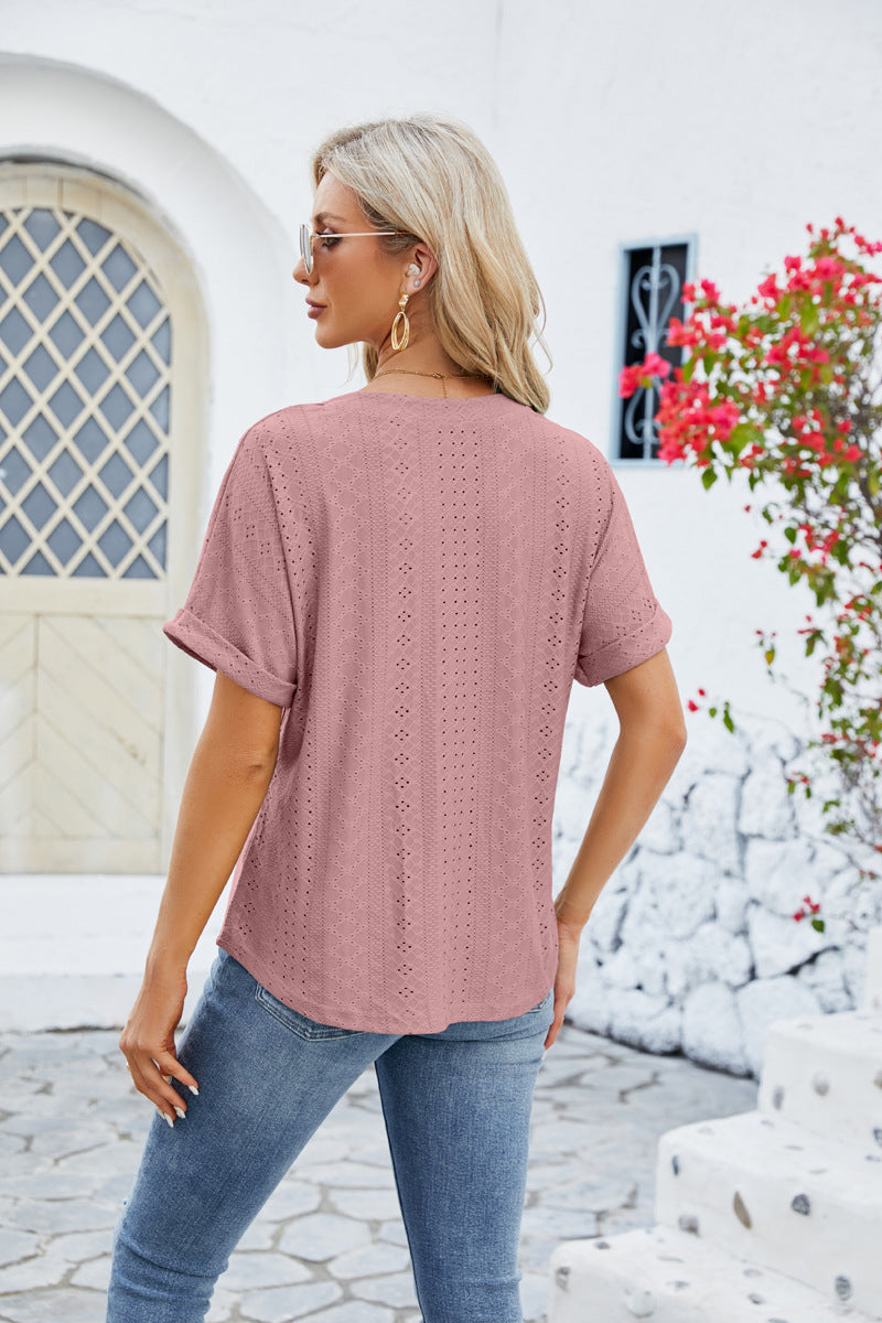 Pull à manches courtes et col en V pour